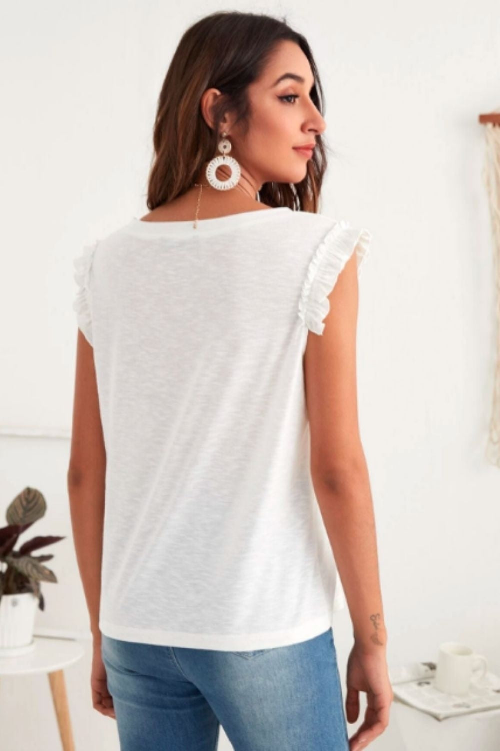 SKU:VNeckWhiteFrillTrimTankTop-XS