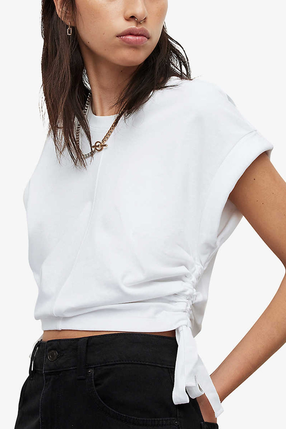 The standout feature of this top is the subtle ruching detail that adds a touch of femininity and texture to the overall look. The ruching not only enhances the visual appeal but also creates a flattering silhouette, making it a wardrobe staple that complements various body shapes.