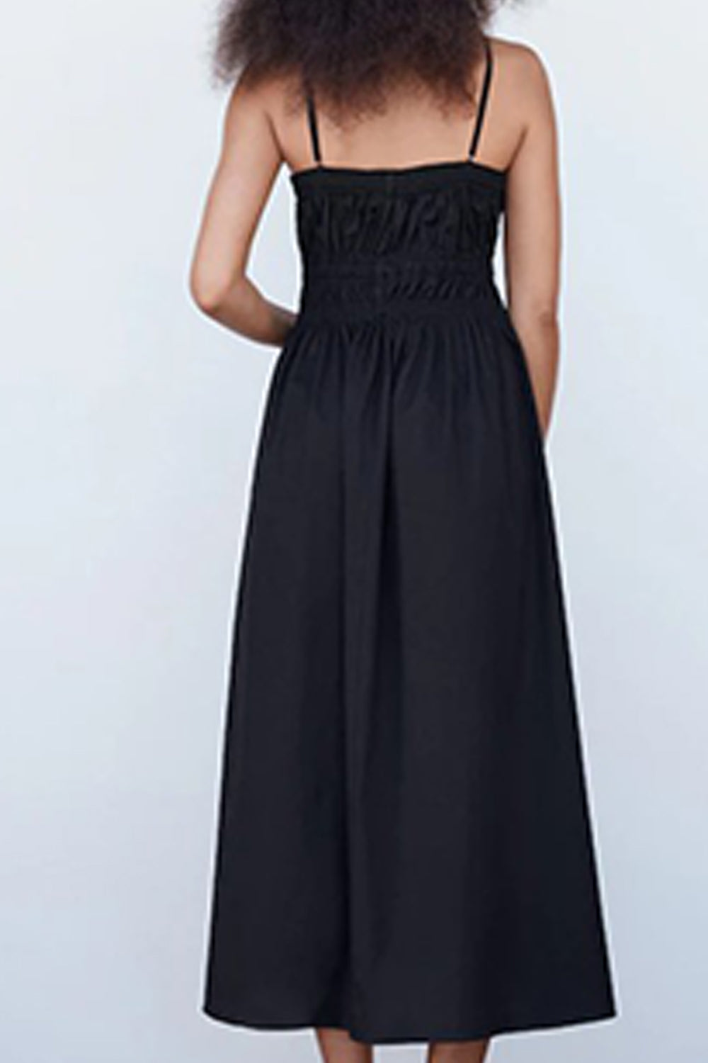 Type-Veria Black Dress Color-Black Neck type-V Neck Sleeve Length-Sleeveless Fit-Slim Fabric-Poplin