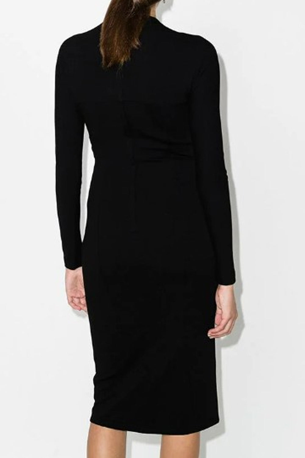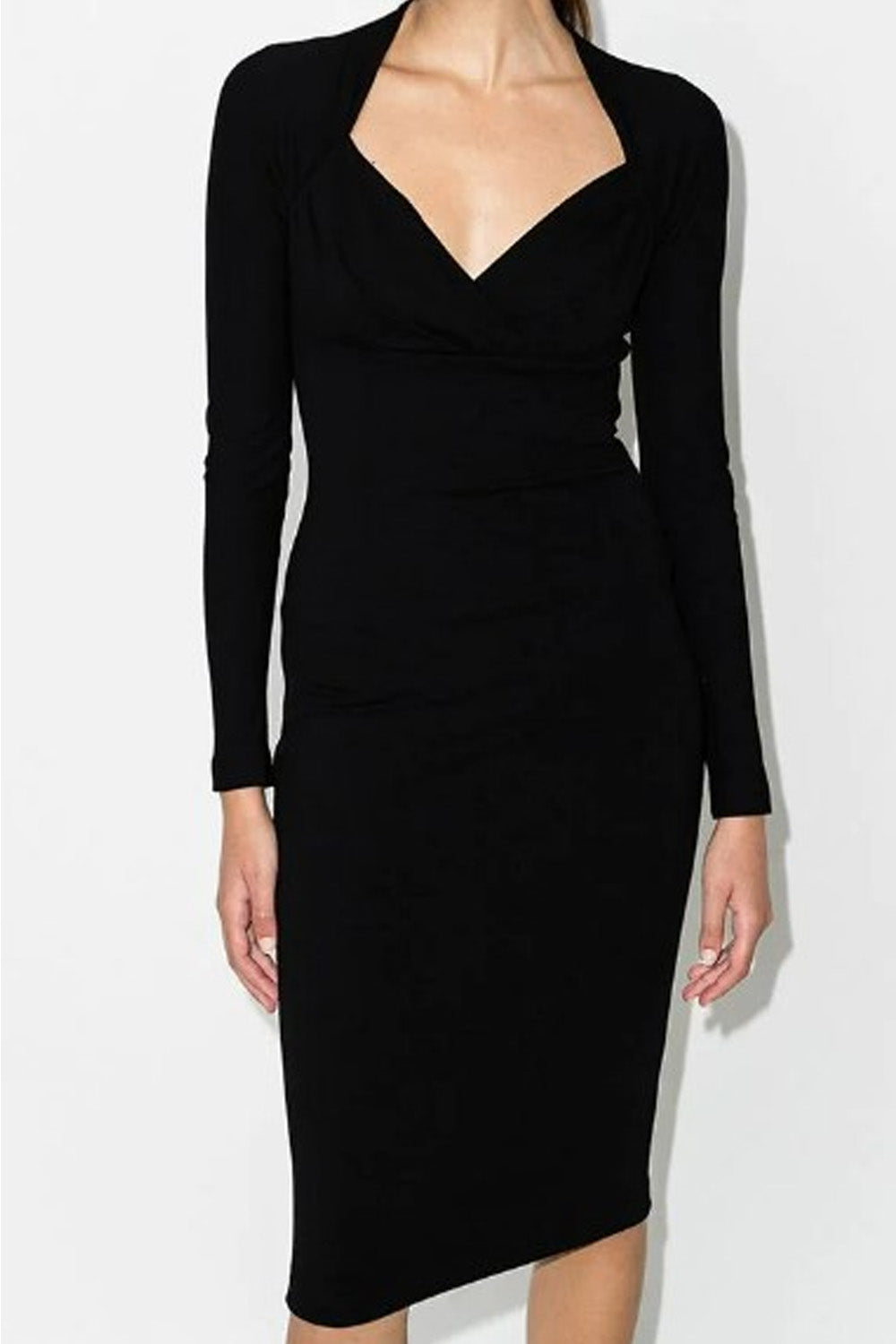 Type-Vermilion Black Dress, Color-Black, Neck type-diamond neck, Sleeve Length-Full sleeve, Fit-Body fit, Fabric-Poly Lycra