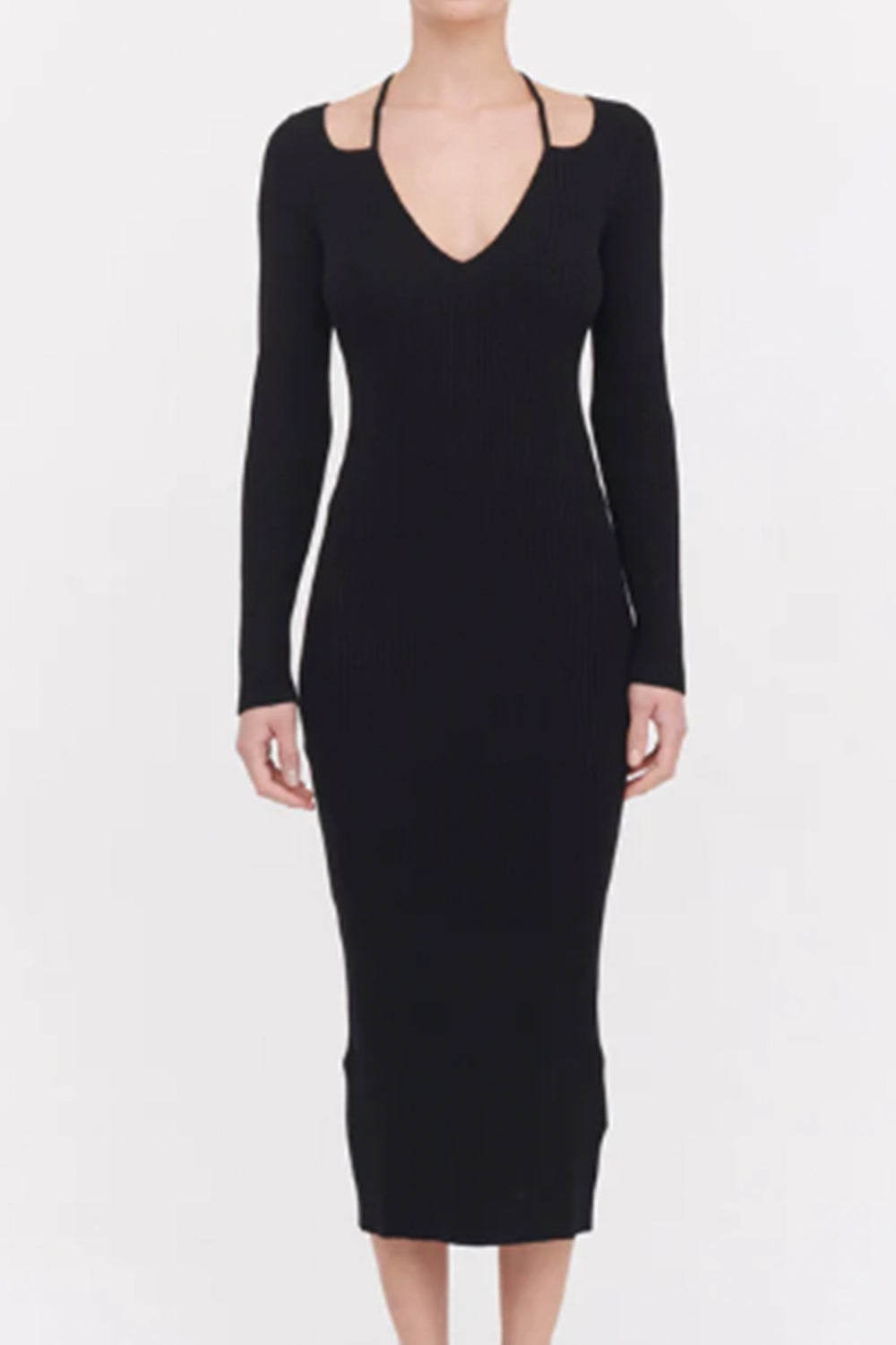 Fabric: Crafted from high-quality rib fabric, this dress ensures a comfortable and luxurious feel against your skin. The rib fabric adds texture and depth to the overall look, elevating the dress and setting it apart from ordinary black dresses. The combination of comfort and style makes it a wardrobe essential.