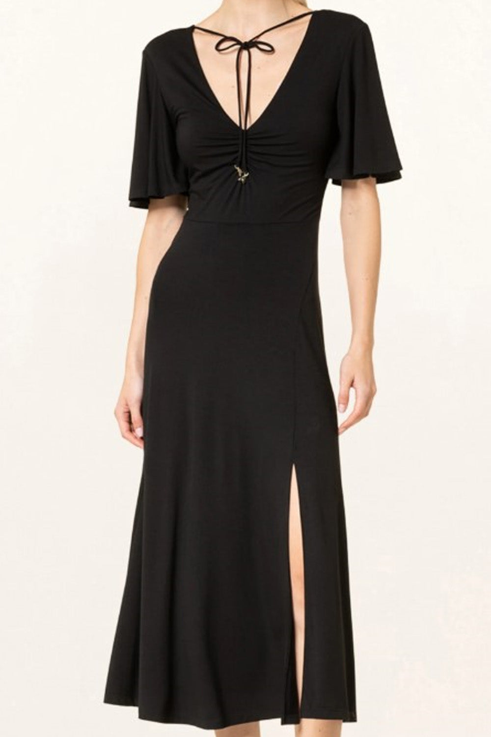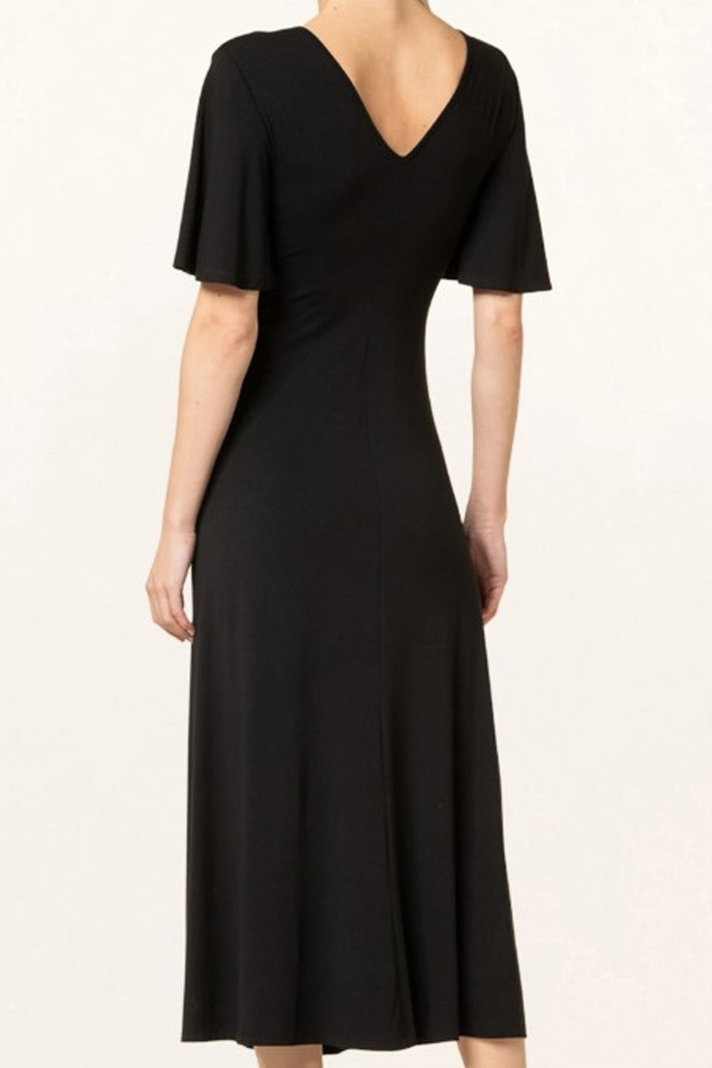 Type-Viridescent Black Dress, Color-Black, Neck type-V Neckline, Sleeve Length-Half Sleeve, Fit-Regular, Fabric-Poly Lycra