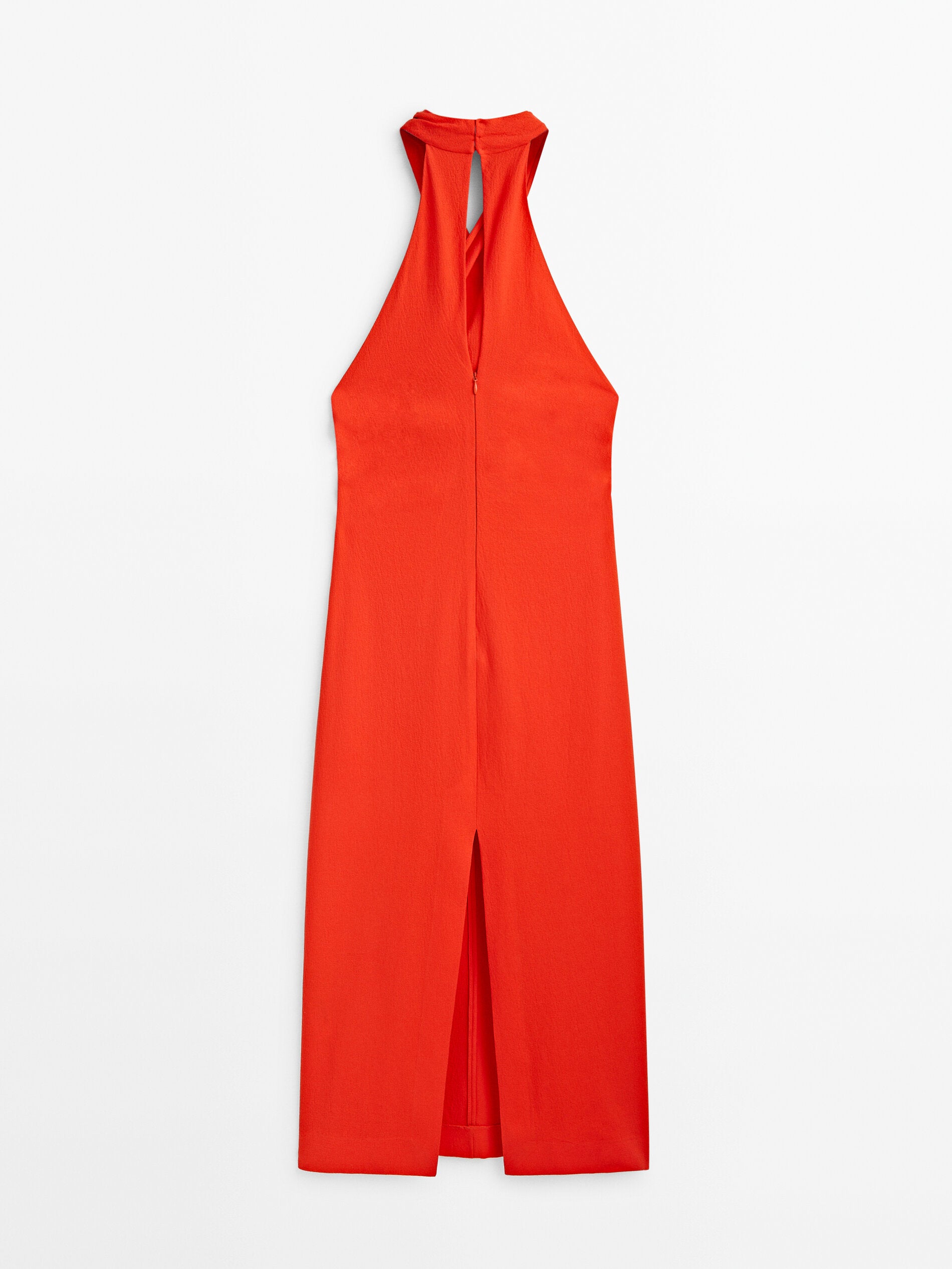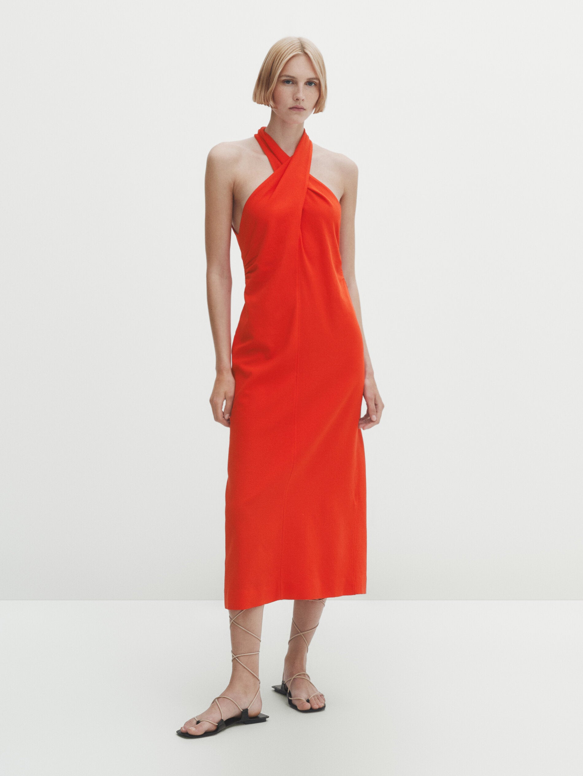 Embrace the allure of the Vladivostok Red Dress, where contemporary fashion meets timeless charm. The criss-cross neck detailing not only adds a modern flair but also creates a flattering silhouette, drawing attention to your neckline. The sleeveless design exudes confidence, allowing you to showcase your shoulders and bask in the glamour of this stunning ensemble.