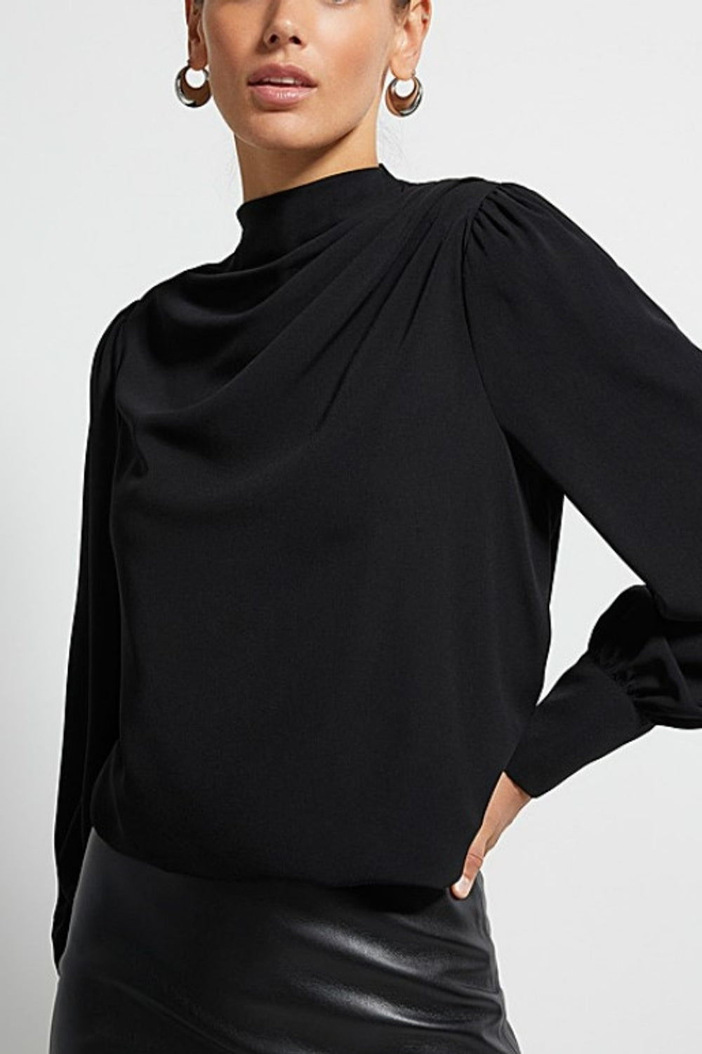 Type-Whimsical Black Top, Color-Black, Neck type-High neck, Sleeve Length-Full Sleeve, Fit-Relaxed, Fabric-Rayon