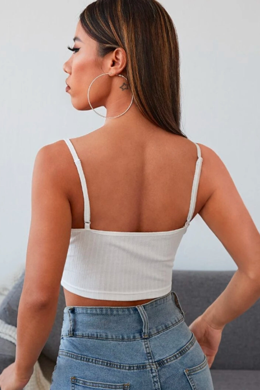Casual Cool: Pair the White Crop Cami Top with your favorite high-waisted denim shorts for an effortlessly cool and laid-back look. Add some sneakers or slides, and you're ready for a day of exploring the city or hanging out with friends.