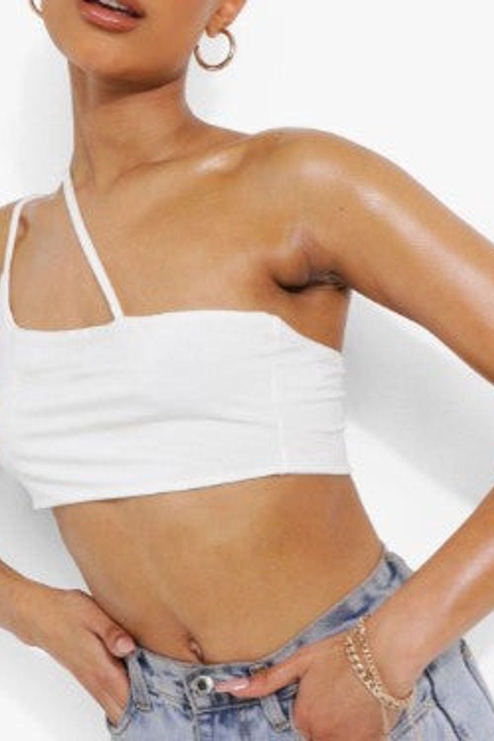 SKU:WhiteCrossStrapDetailDoubleLayerCropTop-XS