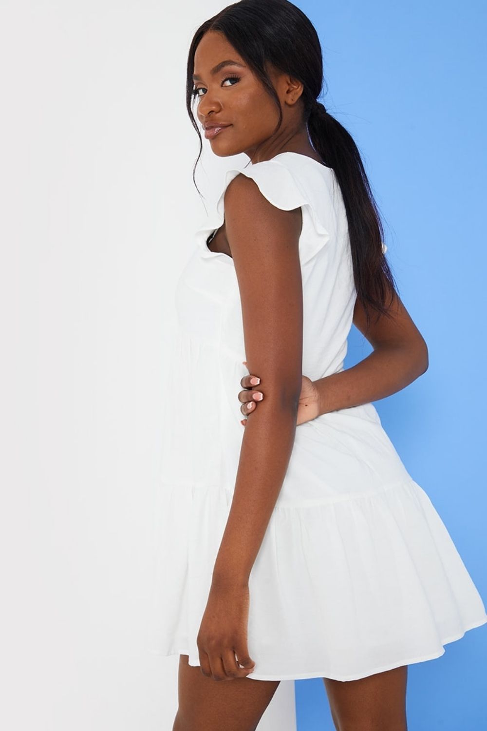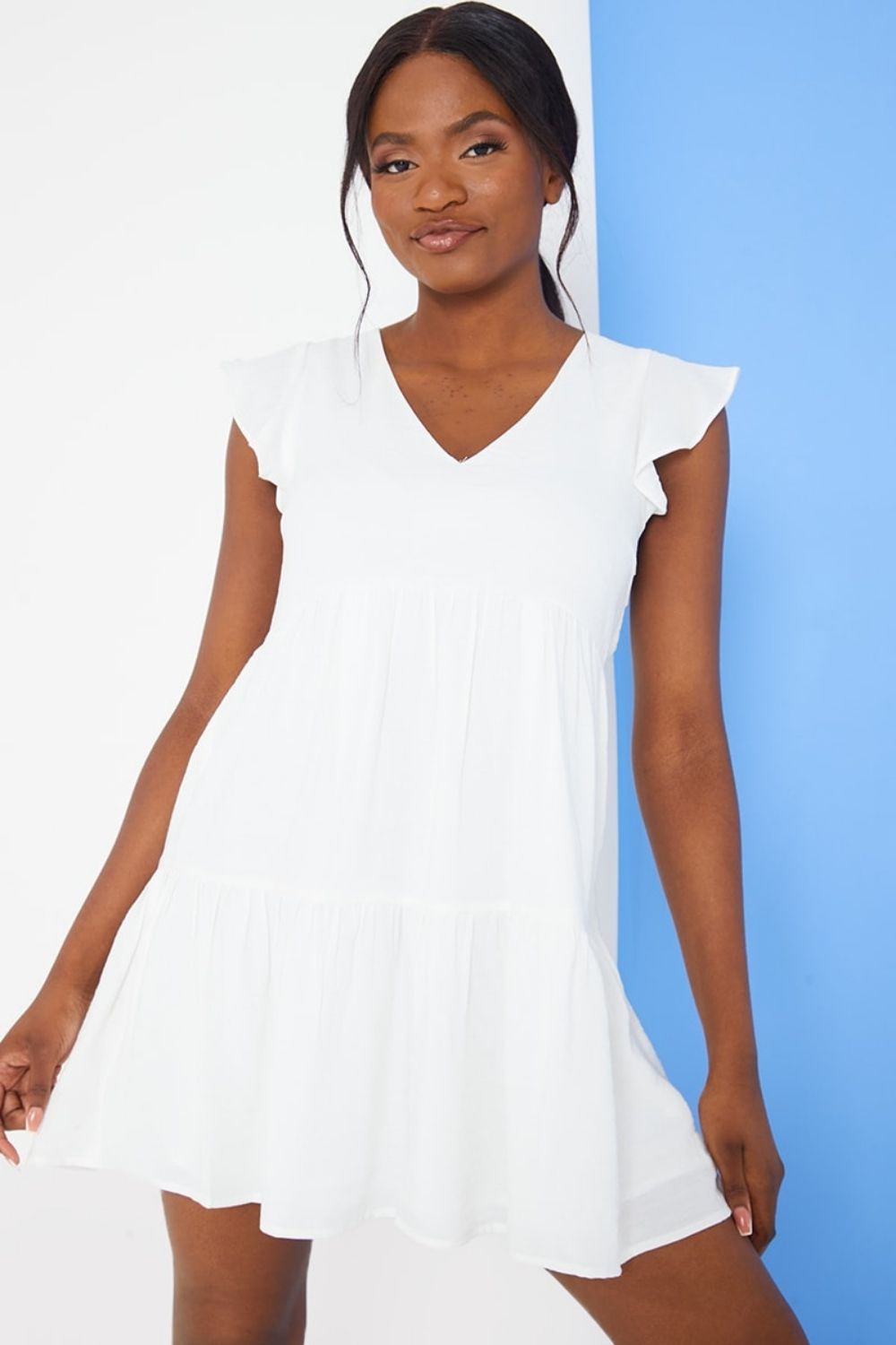 Type- White Flippy Sleeve Dress
