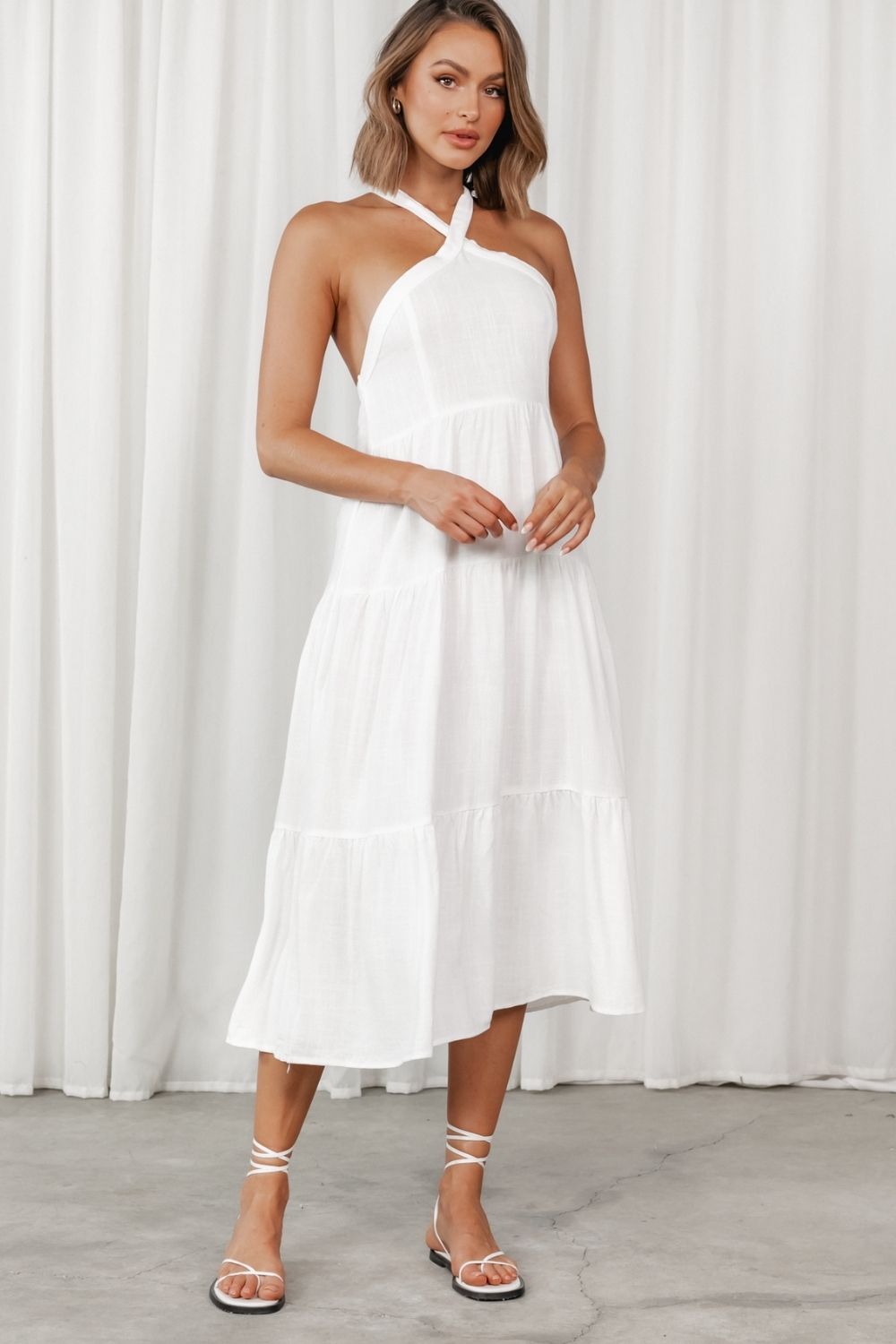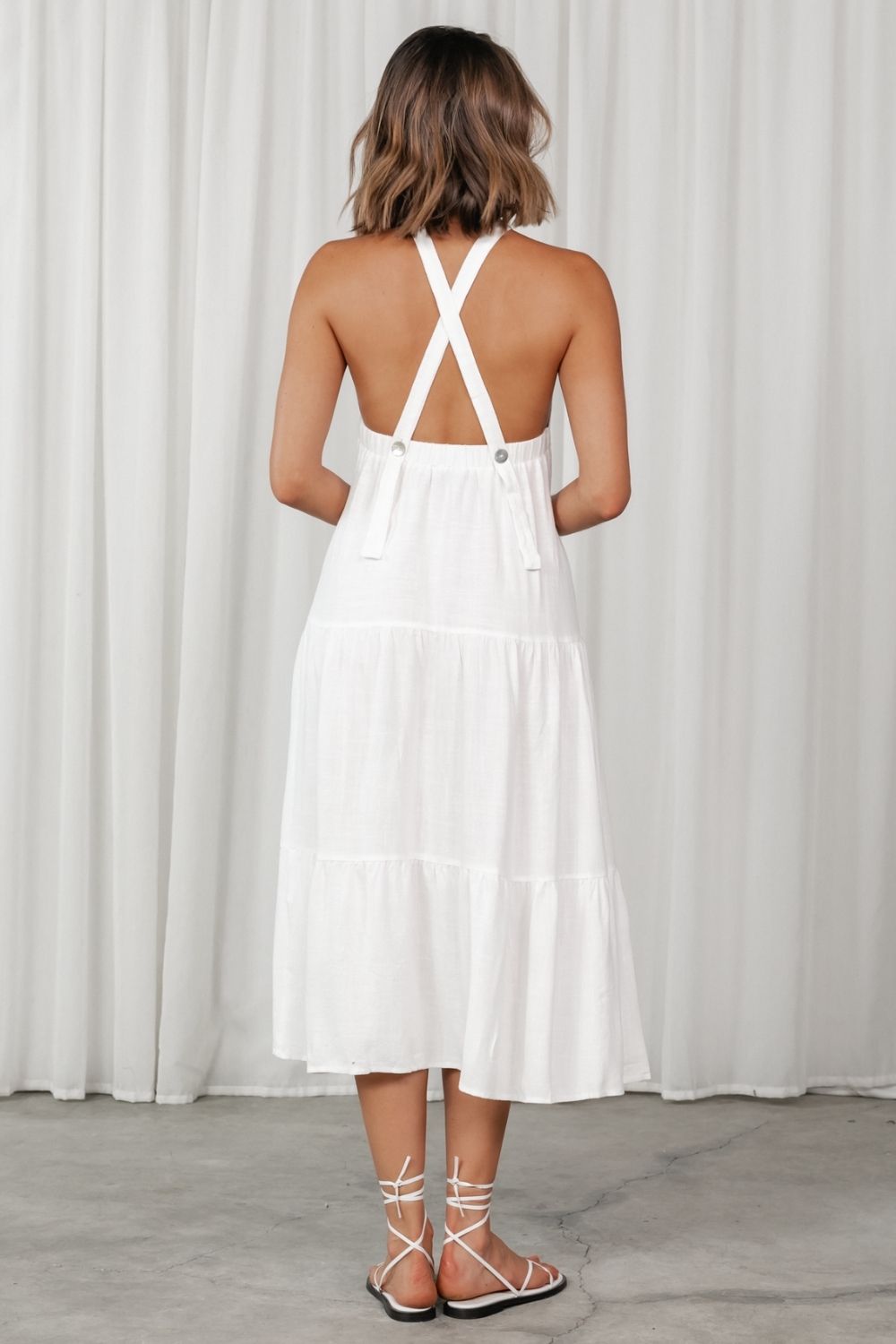 White Halter Neckline Cross Back Dress