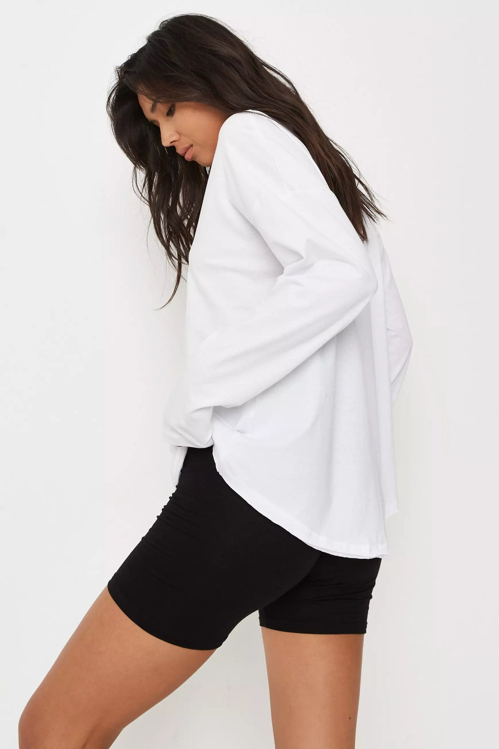 White Jersey Long Sleeve Oversized Basic T Shirt