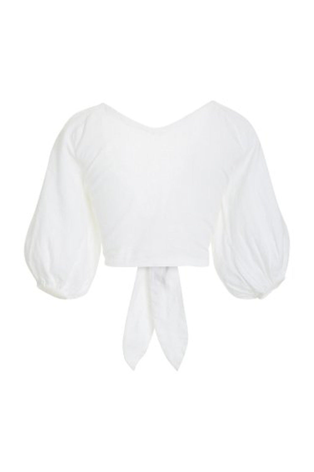 Pair it with high-waisted denim shorts and sandals for a relaxed daytime look, or dress it up with tailored trousers and heels for a more polished ensemble. However you style it, the White Mia Knot Detailed Cropped Top is sure to become a staple piece in your summer wardrobe.