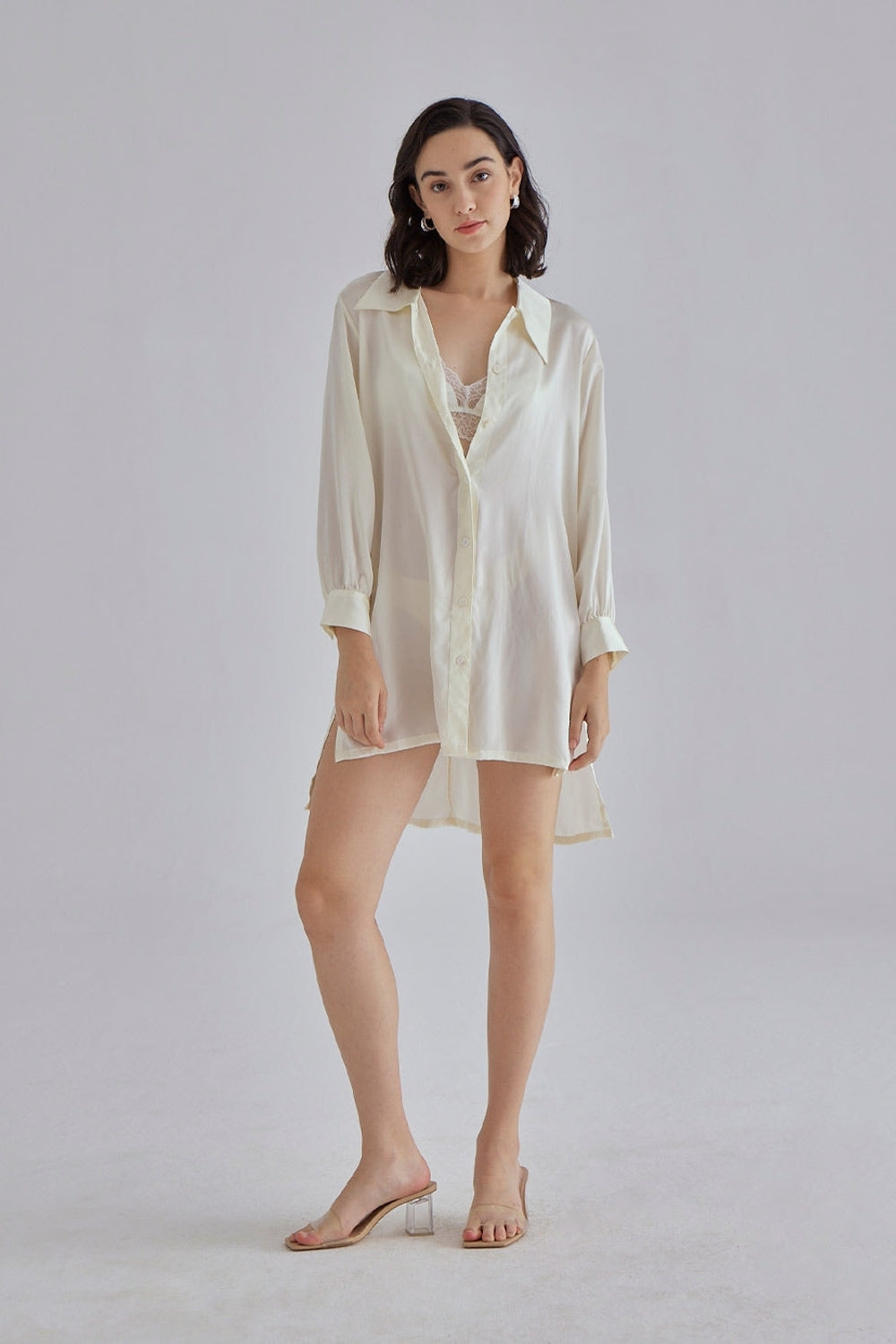 SKU:WhiteOversizedBoyFriendSilkyBlouseShirt-XS