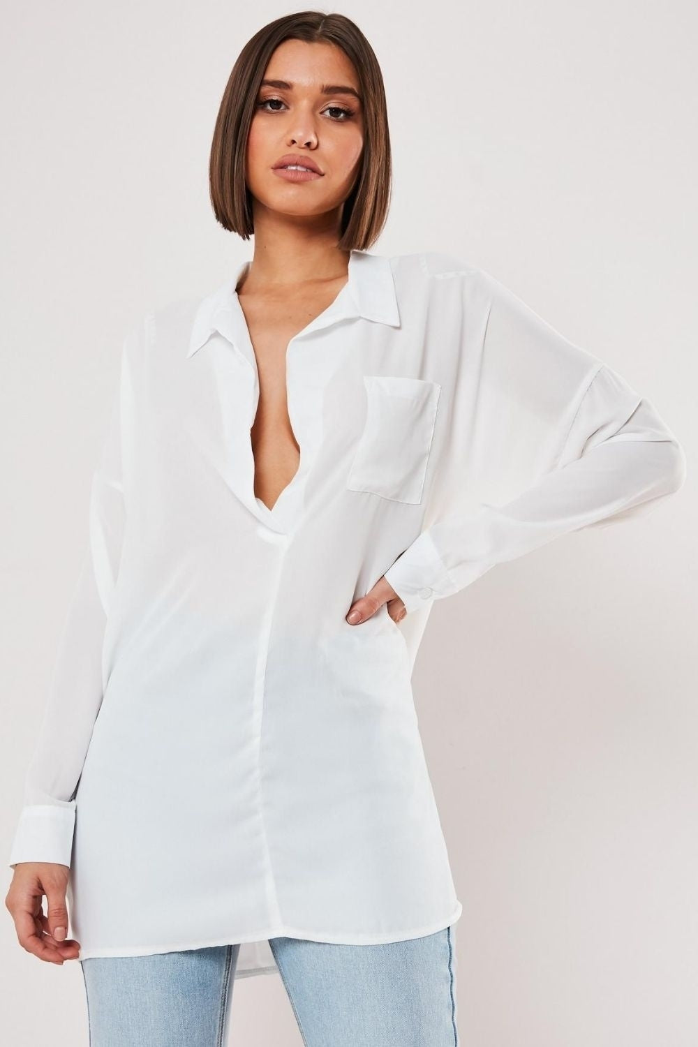 White Oversized Plunge Tunic