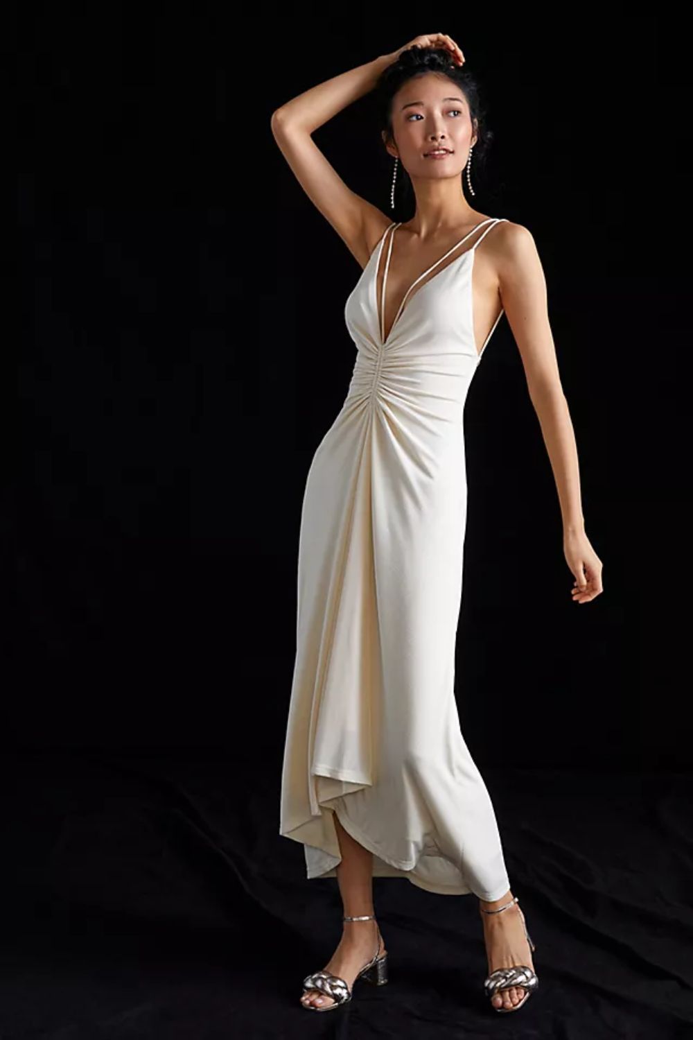 White Pretty Me Ruched Midi Dress