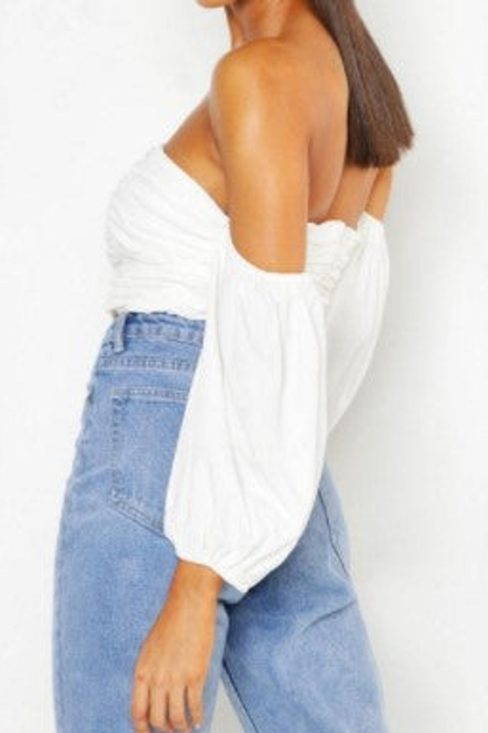 Whether you're lounging by the pool or exploring the city streets, our White Ruched Volume Sleeve Crop Top is the perfect addition to your summer wardrobe. Embrace effortless style and undeniable sophistication with this must-have piece.