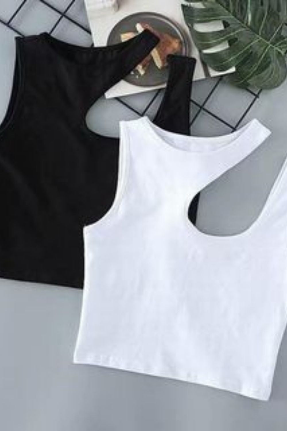 SKU:WhiteShoulderCutOutSleevelessCropTop-XS