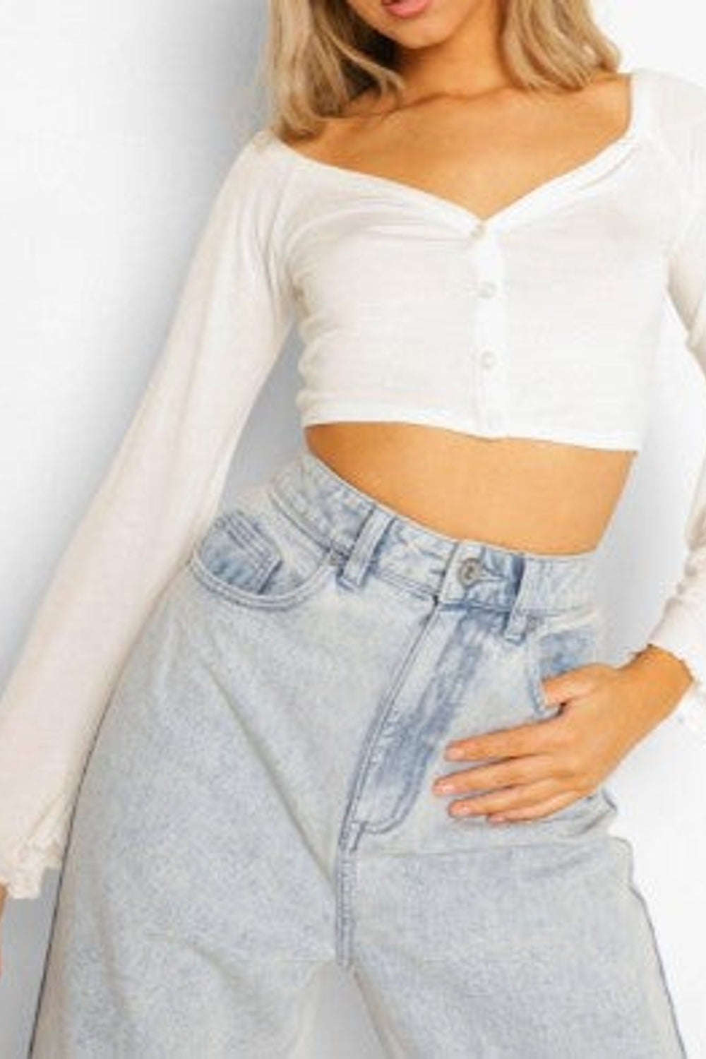 Whether you're heading to brunch with friends or a night out on the town, our White Tall V-neck Button Front Long Sleeve Crop Top is sure to become a staple in your summer wardrobe. Shop now and elevate your style game effortlessly.