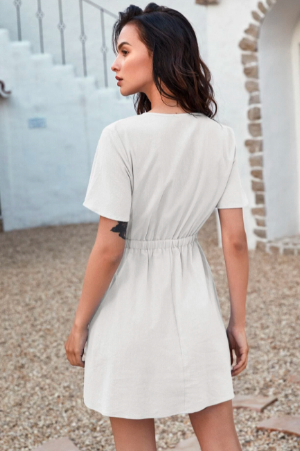 SKU:WhiteTieFrontFlareMiniDress-XS