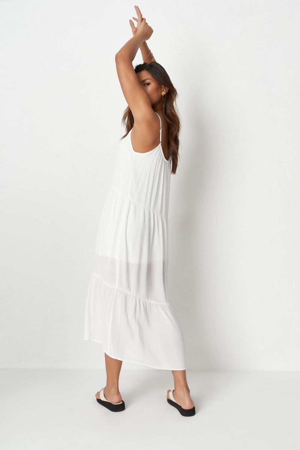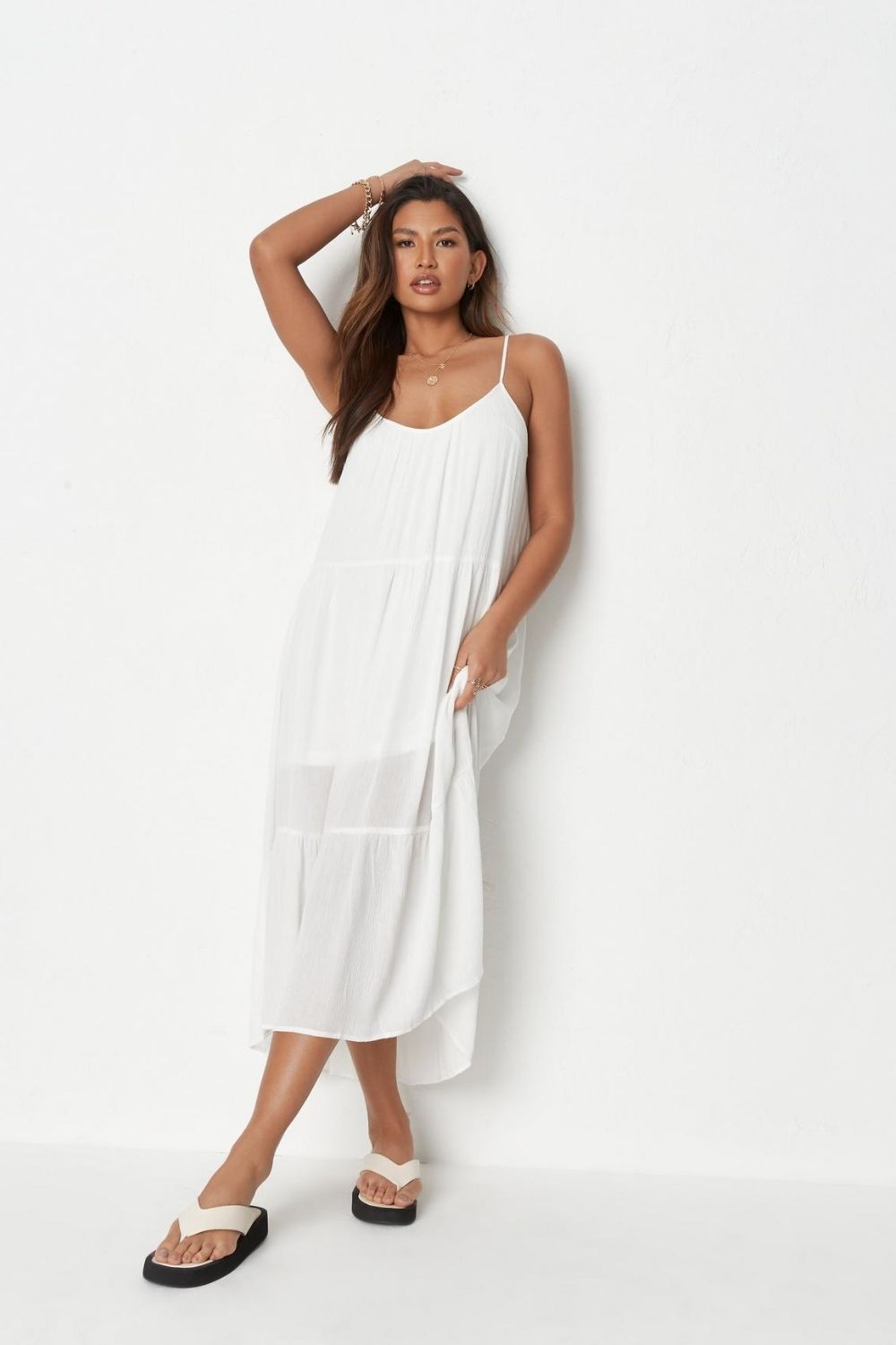 SKU:WhiteTieredCamiMidiSmockDress-XS