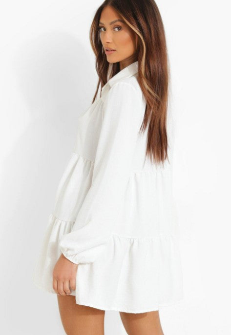 White Tiered Shirt Dress