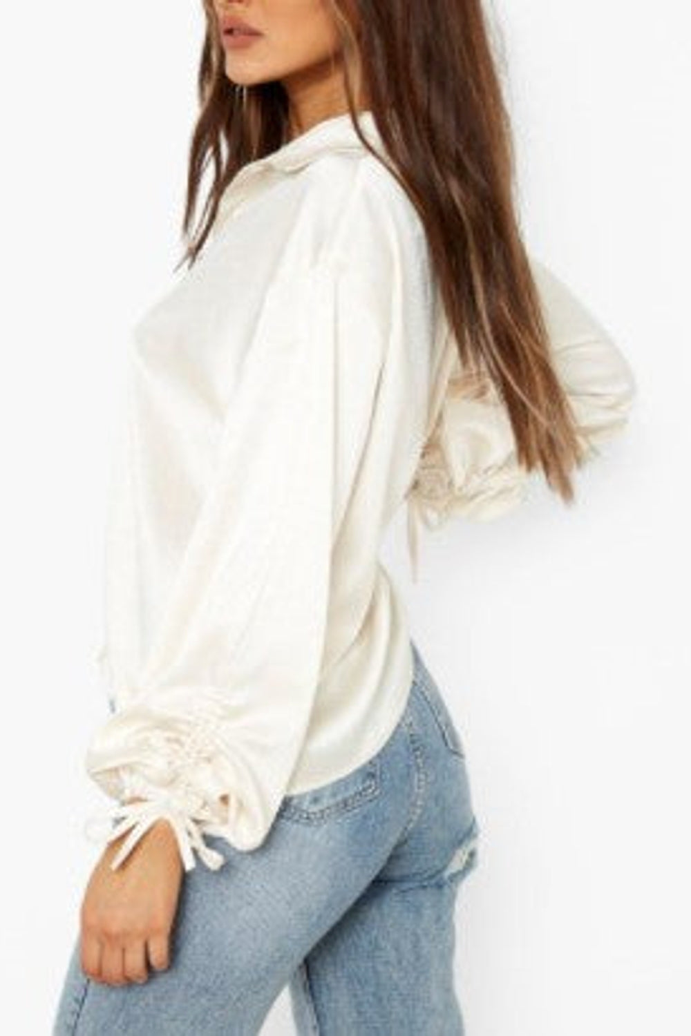 Introducing our White Woven Ruched Sleeve Shirt, a timeless addition to your summer wardrobe. Crafted with care from premium satin fabric, this shirt exudes elegance and comfort. Its close neckline and full sleeves offer a classic silhouette, while the ruched detailing adds a contemporary twist. Whether you're heading to brunch with friends or a casual day out, this shirt effortlessly transitions from day to night.