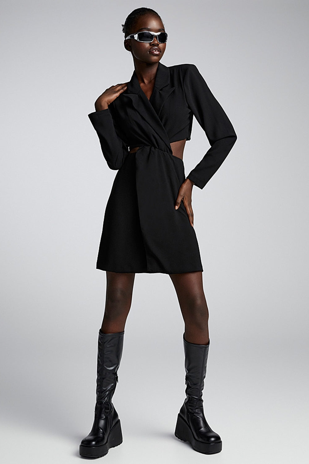 Edgy Appeal: Add an edgy twist to your ensemble by layering a leather jacket over the dress and completing the look with ankle boots and statement accessories.
