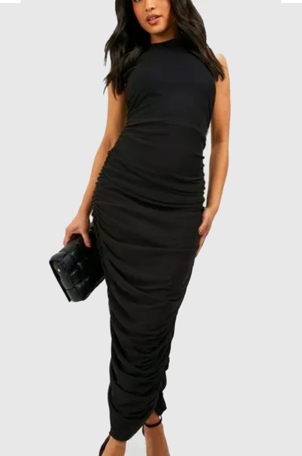 Type-Wisp Black Dress, Color-Black, Neck type-Round neck, Sleeve Length-Sleeveless, Fit-Body Fit, Fabric-Poly Lycra