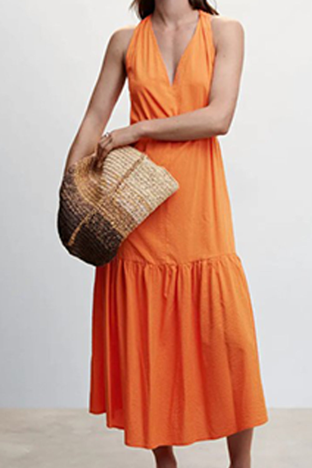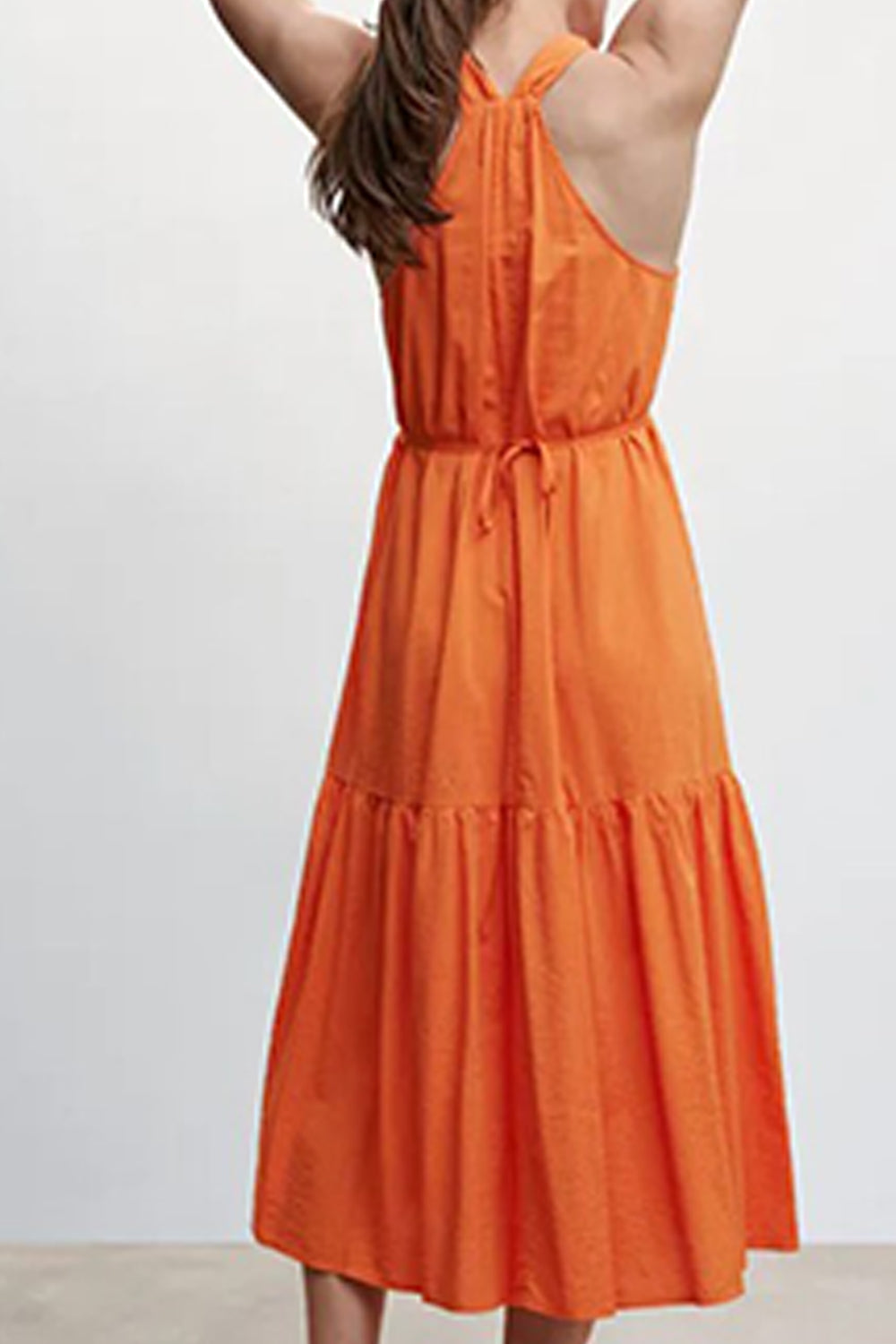 Type-Xanthi Orange Dress Color-Orange Neck type-V Neck Sleeve Length-Sleeveless Fit-Regular Fabric-Poplin
