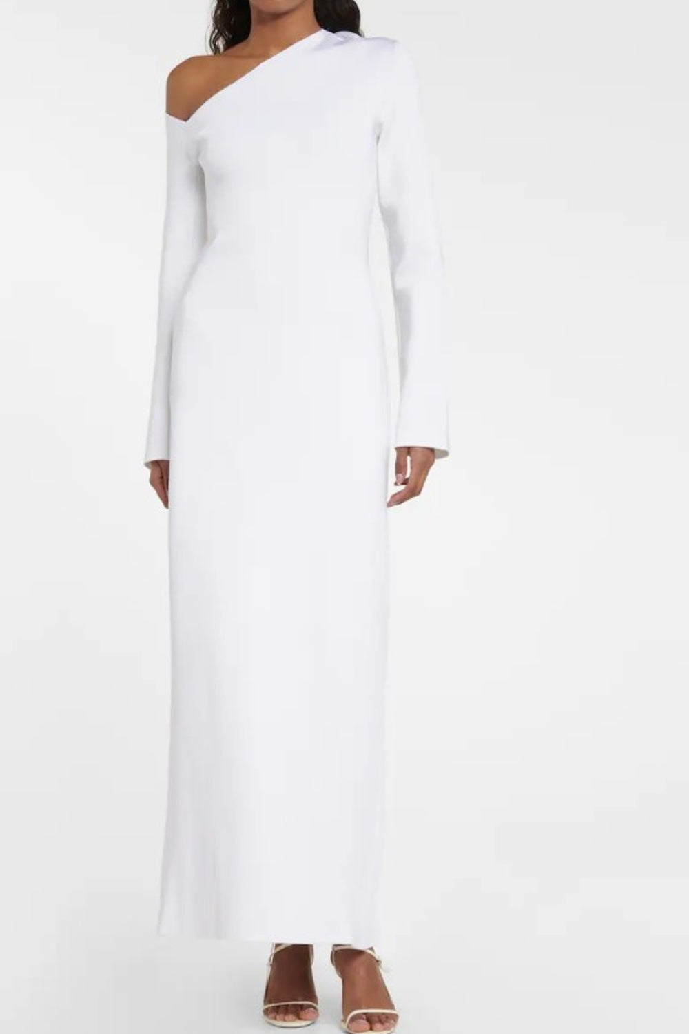 Type-Yangsan White Dress, Color-White, Neck type-Asymmetric Neck , Sleeve Length-Full Sleeve, Fit-Body Fit, Fabric-Poly Lycra