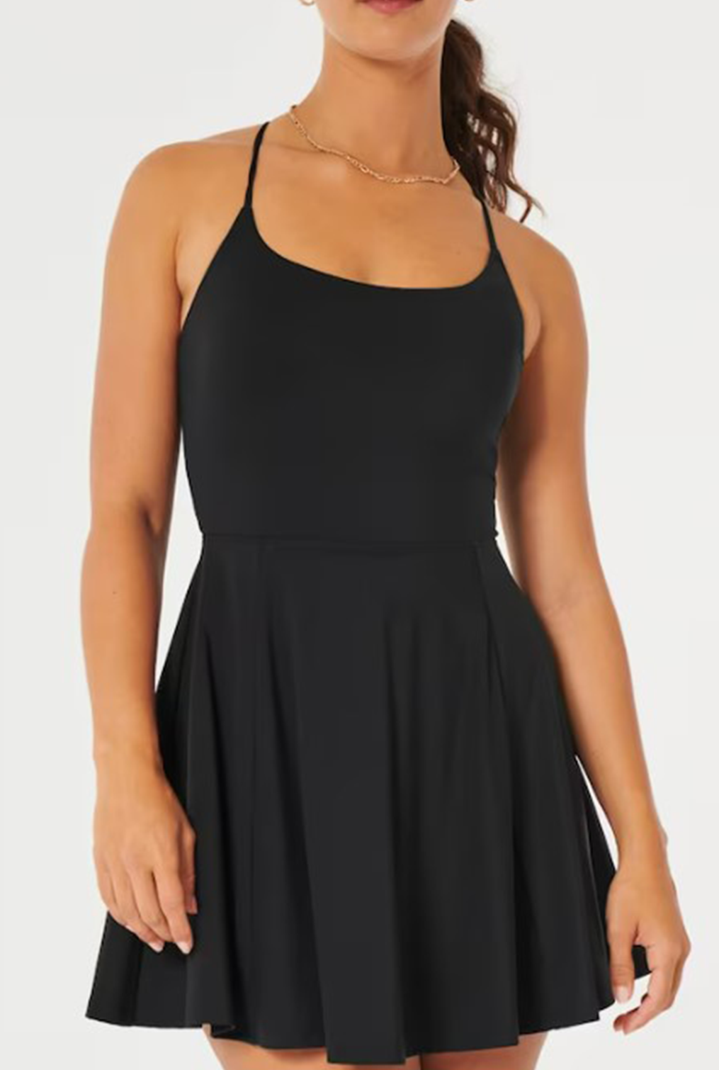 Type-Yawn Black Dress, Color-Black, Neck type-Scoop neck, Sleeve Length-Sleeveless, Fit-Regular, Fabric-Poly Lycra
