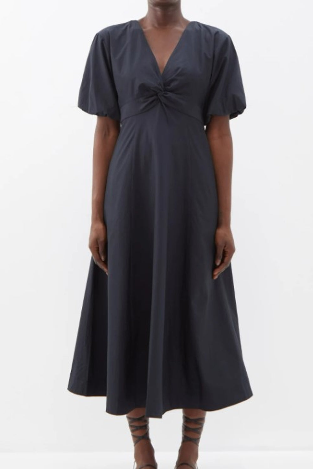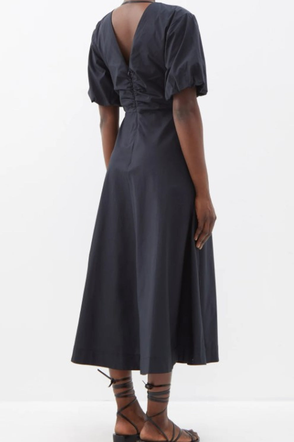 Type-Yeongdong Black Dress, Color-Black, Neck type-V Neck, Sleeve Length-Half Sleeve, Fit-Regular, Fabric-Poplin