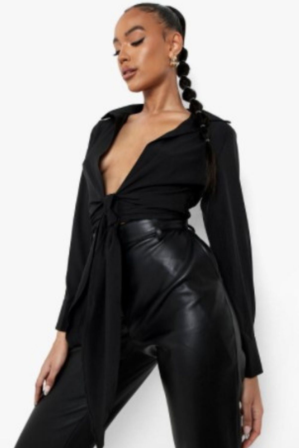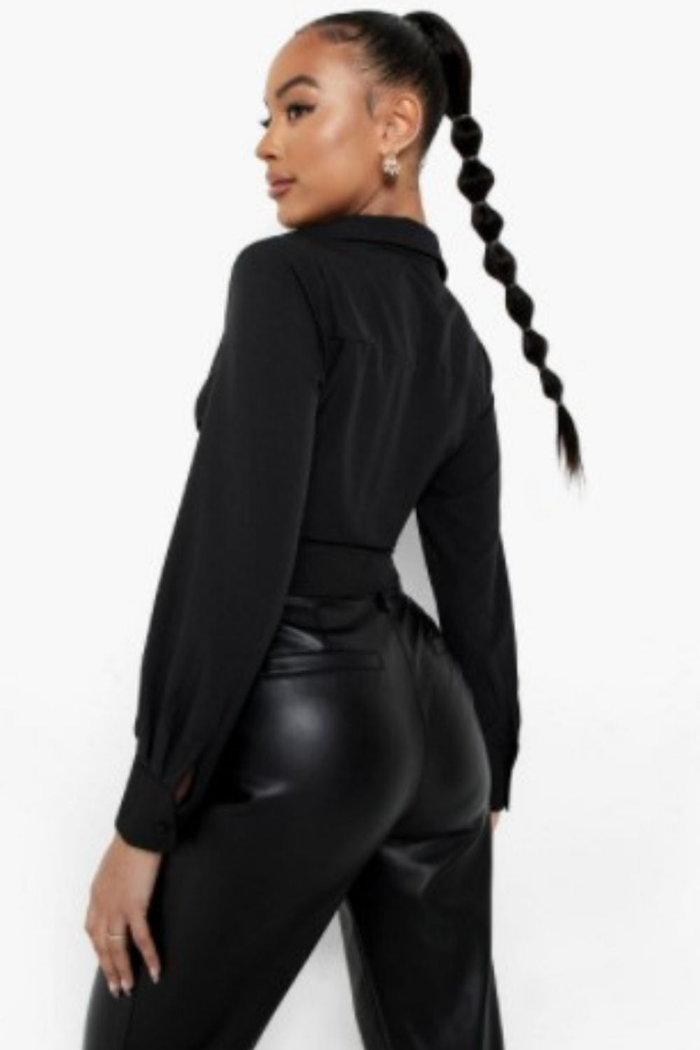 Chic Office Look: Pair the black top with tailored trousers and pointed-toe heels for a polished office ensemble. Add a statement necklace or a sleek belt to complete the look with finesse.
