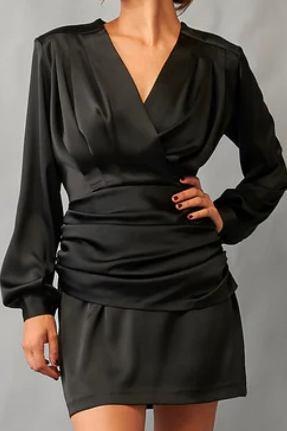 Type-Zenith Black Dress, Color-Black, Neck type-V neck, Sleeve Length-Full sleeve, Fit-Body Fit, Fabric-Satin