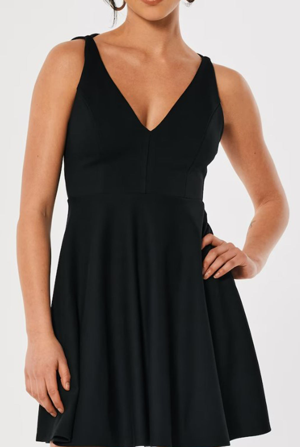 Type-Zest Black Dress, Color-Black, Neck type-V Neckline, Sleeve Length-Sleeveless, Fit-Regular, Fabric-Poly Lycra