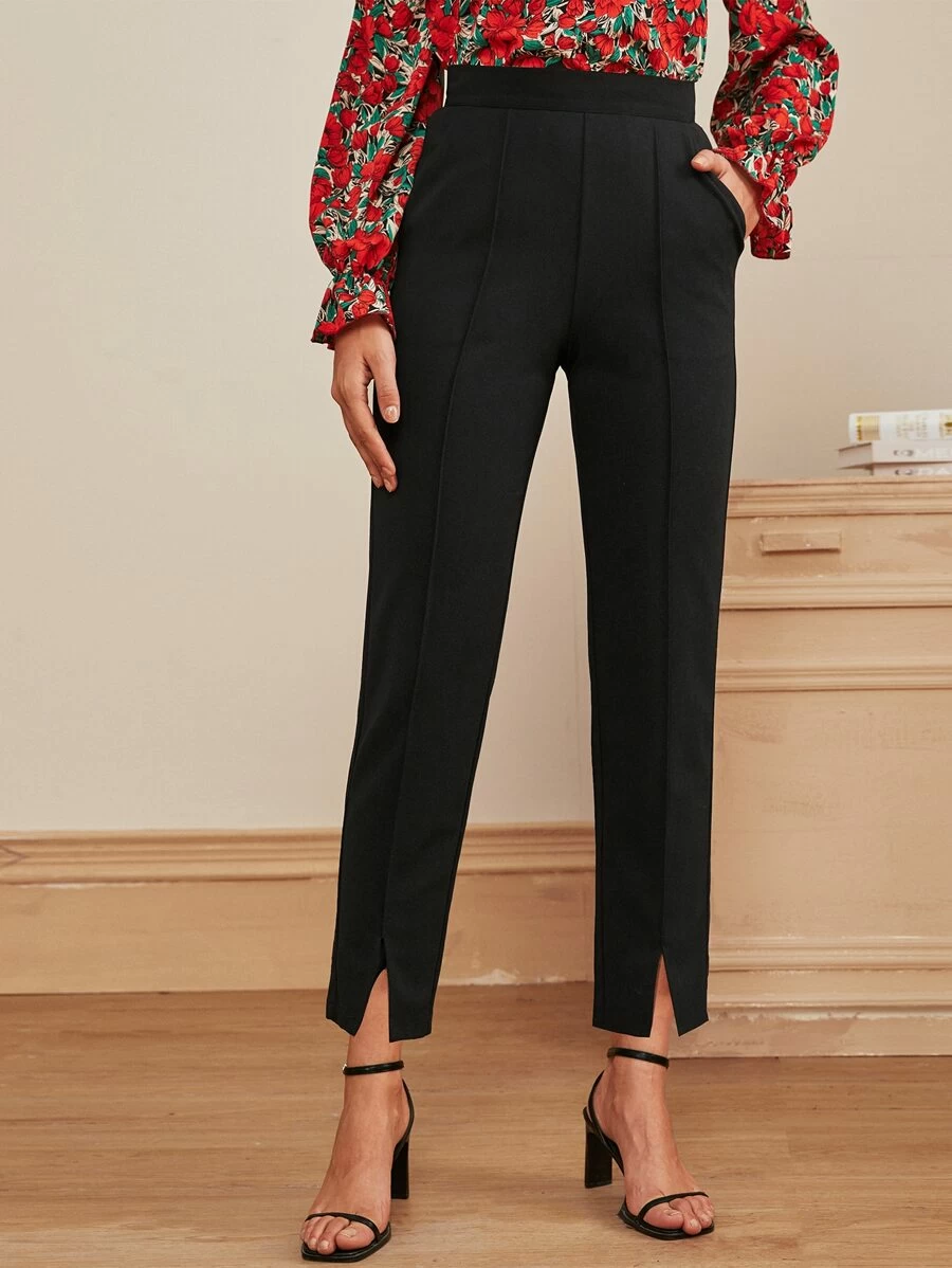 SKU:LNSZipSplitHemTailoredPantsBlack-XS